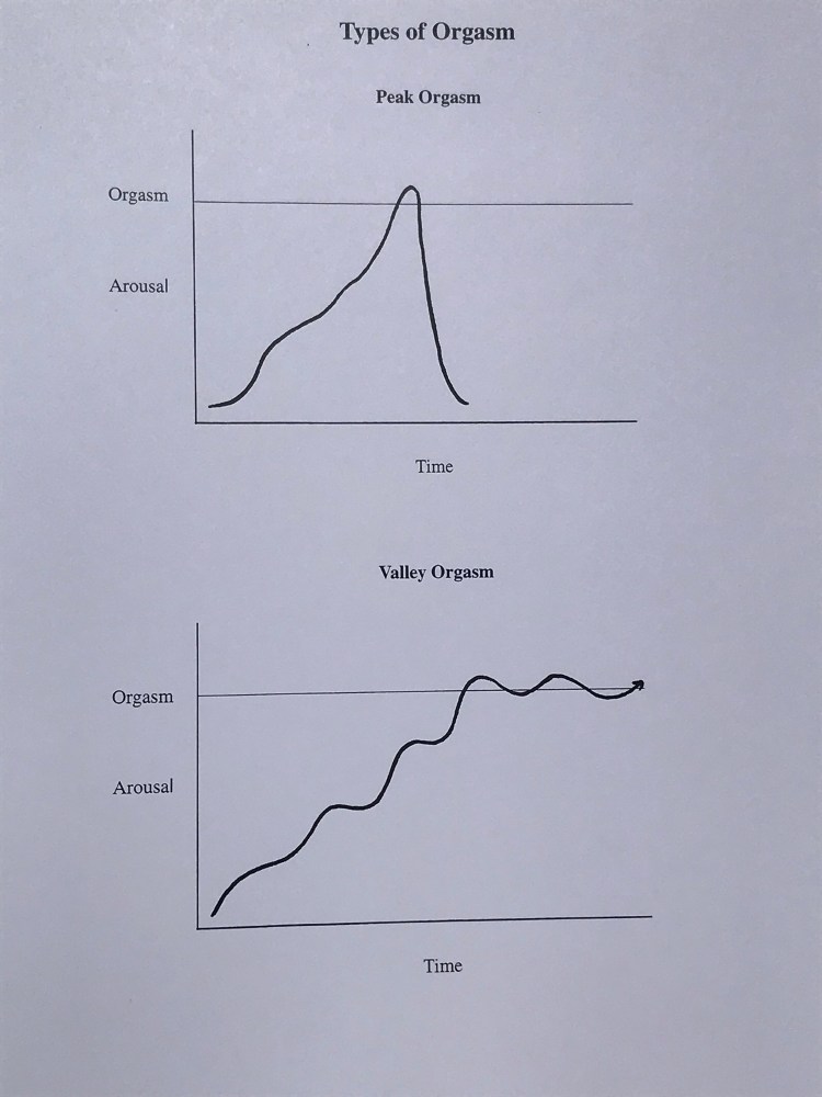 This is not to say that peak orgasms are bad or wrong. They have their place. If you only have time for a “quickie” in the morning, they are great. And to have the option of the valley orgasm as well adds to your experience.