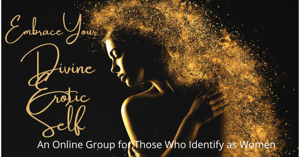 The divine erotic self is one of those aspects. A woman who is connected to her divine erotic is full and confident in her sexuality. She knows her power there, and she flows easily into pleasure that opens a portal to the divine. She can enjoy a rapturous intimate connection with a partner or delight in the ecstatic bliss of a solo journey into the pleasures of the cosmos.